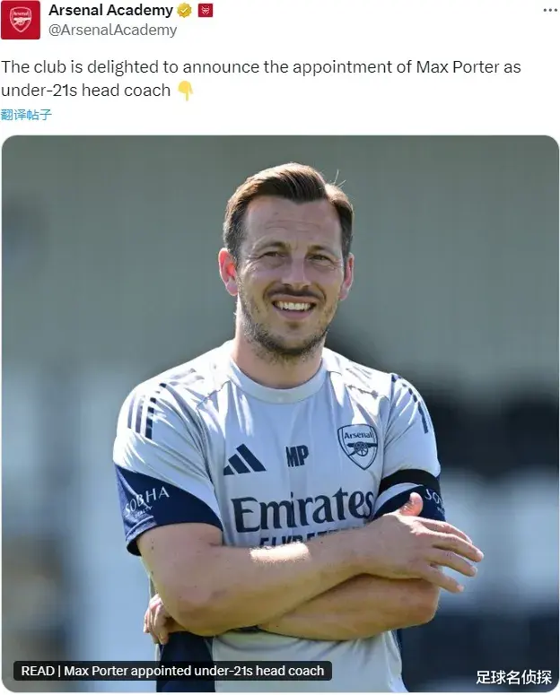 chính thức: Max Porter được bổ nhiệm làm huấn luyện viên trưởng của Arsenal U21.