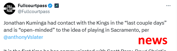 Theo tin tức mới nhất của Slater, Kumingga đã liên lạc với tổng giám đốc Sacramento Kings Scott Perry và các giám đốc điều hành cấp cao khác trong những ngày gần đây, và anh ta đã thể hiện thái độ cởi mở đối với việc gia nhập các vị vua. Đây là lần đầu tiên Kumingga có một cuộc trò chuyện trực tiếp với quản lý của nhà vua và quá trình giao tiếp này mang đến cho cả hai bên cơ hội để khám phá các khả năng một cách chi tiết.