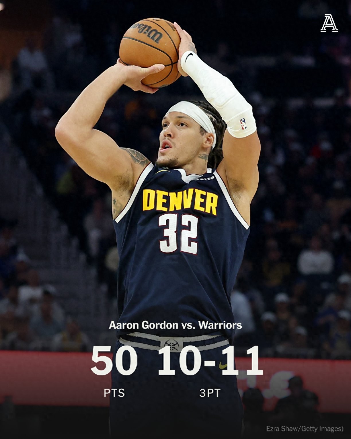 Aaron Gordon bùng nổ. Anh chơi 38 phút 39 giây, thực hiện 17 trong số 21 cú sút, 10 trong số 11 quả ba điểm và 6 trong số 6 quả ném phạt. Anh ghi được 50 điểm, 8 rebound và 2 kiến tạo. Gordon là cầu thủ thứ sáu tại NBA ghi được 50 điểm trong trận mở màn mùa giải thường xuyên. Trước đây có Chamberlain, Jordan, Baylor, Irving và Anthony Davis. Gordon cũng là cầu thủ ghi nhiều bàn nhất trong lịch sử Nuggets trong trận mở màn.